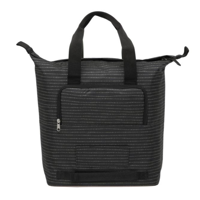 De Shopper New Looxs Kota is een ruime fietstas met modern design, gemaakt 100% gerecycled polyester. De tas beschikt over een groot hoofdvak en extra ritsvakken voor kleinere items. De fietstas wordt bevestigd met New Looxs kunststof haken en is geschikt voor diverse fietsen, inclusief elektrische. De tas is stevig dankzij de foam versteviging en kunststofplaat op de bodem. De tas is waterafstotend maar niet 100% waterdicht; voor zwaardere regenbuien wordt aanbevolen een New Looxs regenhoes te kopen. Handige nylon handvaten zorgen voor comfortabel dragen en een stoer, modern uiterlijk. Een ritsvakje bedekt de haken wanneer de tas als gewone shoppertas wordt gebruikt.